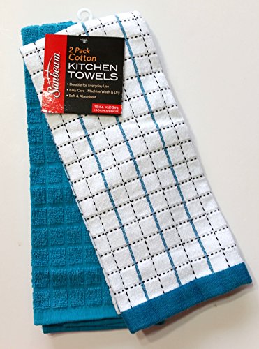 Sunbeam 2 pack 100 % Cotton Kitchen Towels 16 inches x 26 inches (Lake Blue)