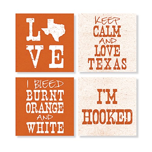 Carson Home Accents Set of 4 Stoneware Texas House Coasters, Burnt Orange and White