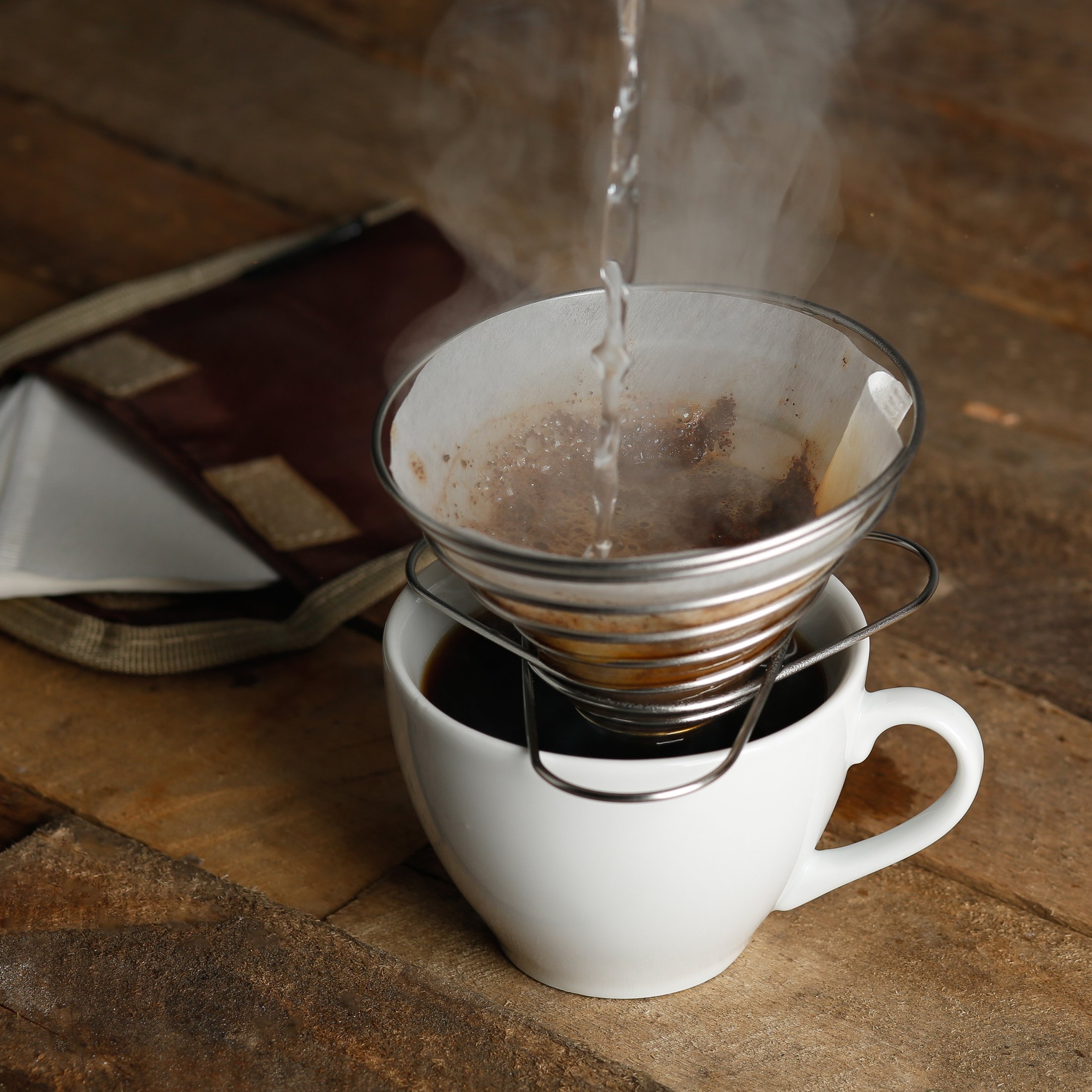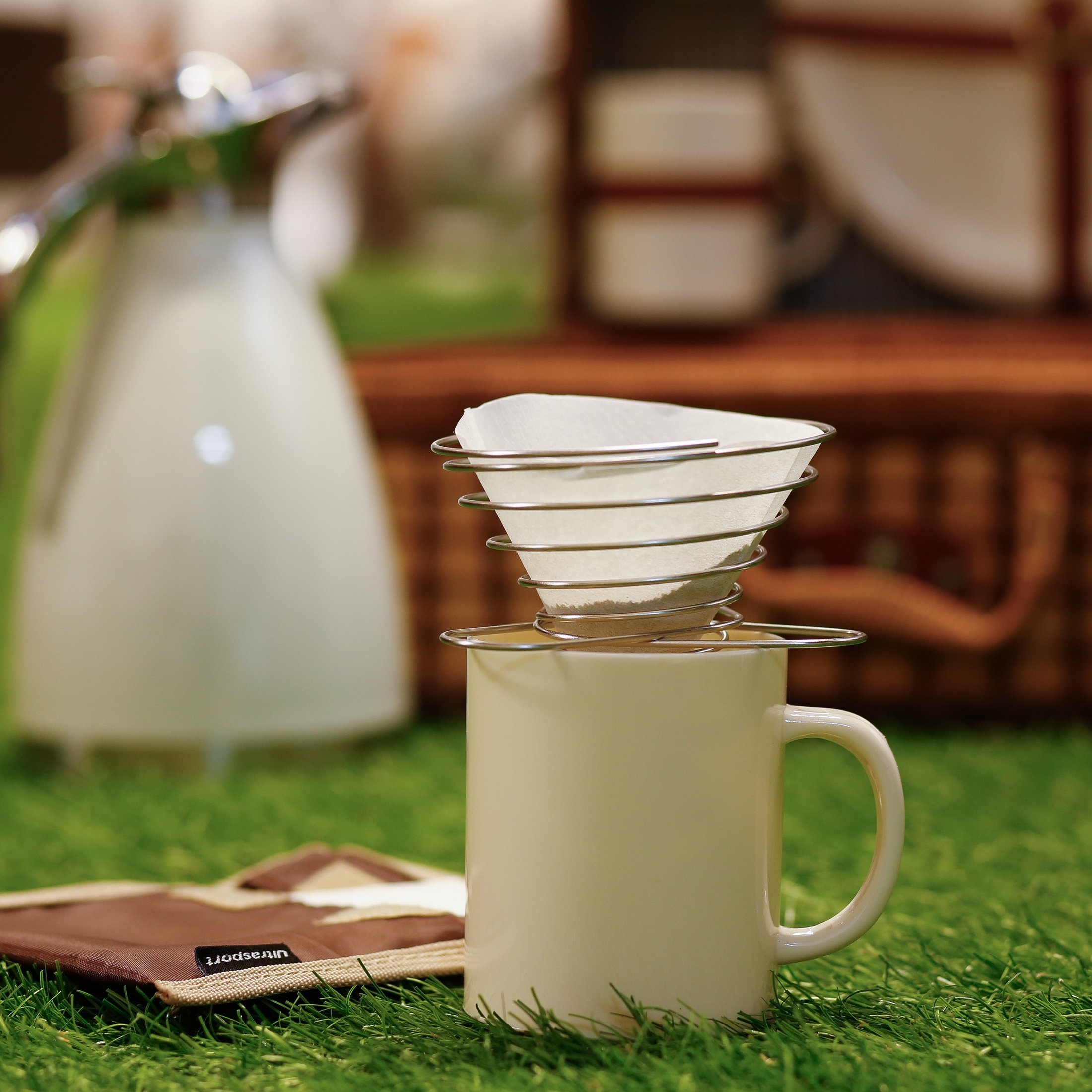 This foldable coffee filter holder can be used to make up to 2 cups of coffee.