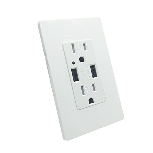 USB Outlet - LASOCKETS Dual USB Ports 4.2A DC White Wall Smart High Speed TR Charging Outlets, 15ATamper Resistant AC Receptacle, USB Plug Charger Outlet with Free Wall Plates, UL Listed (1 Pack)
