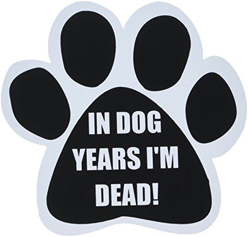 "In Dog Years I'm Dead!" Car Magnet With Unique Paw Shaped Design Measures 5.2 by 5.2 Inches Covered In UV Gloss For Weather Protection