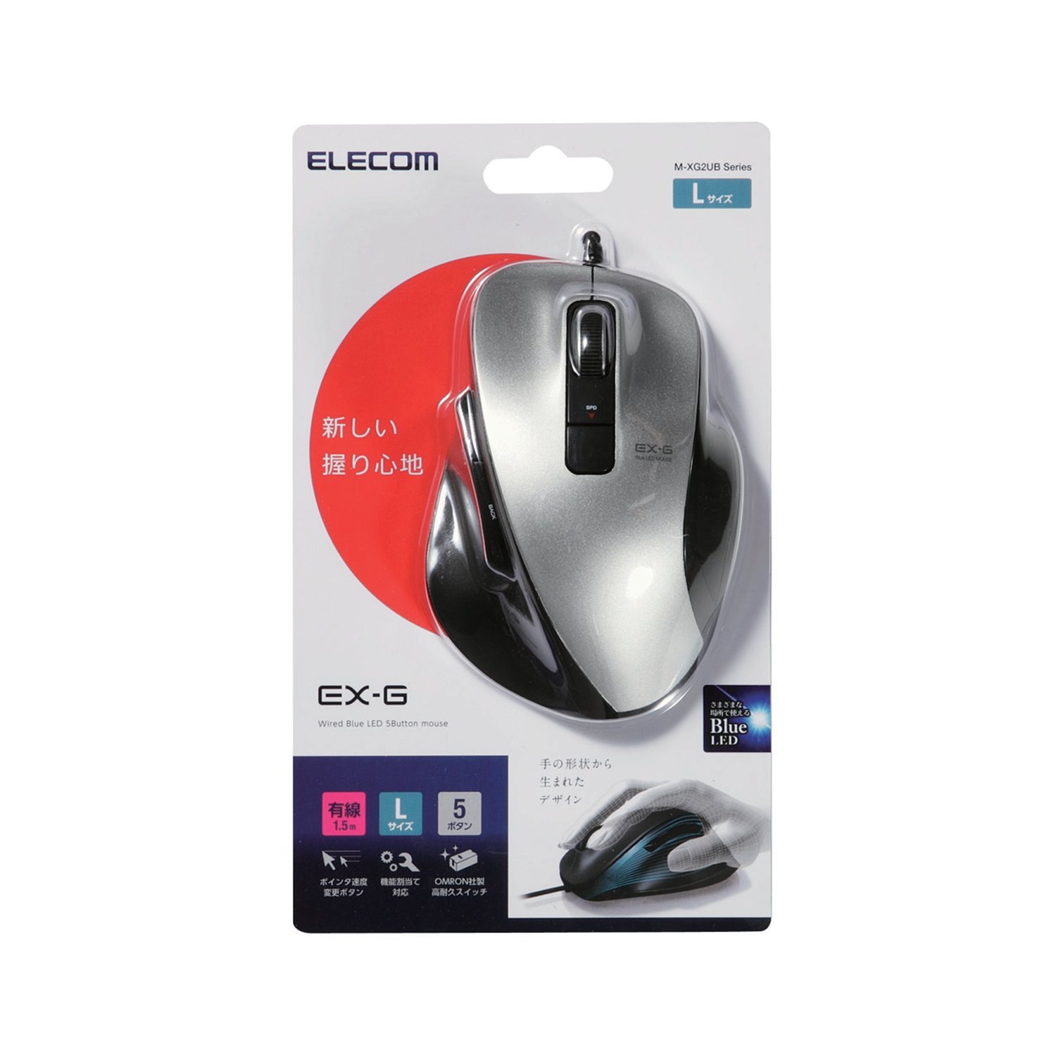 It is a 5 button mouse "EX-G" which realized "easy-to-grasp" which was unlikely, due to the design born from the hand shape.