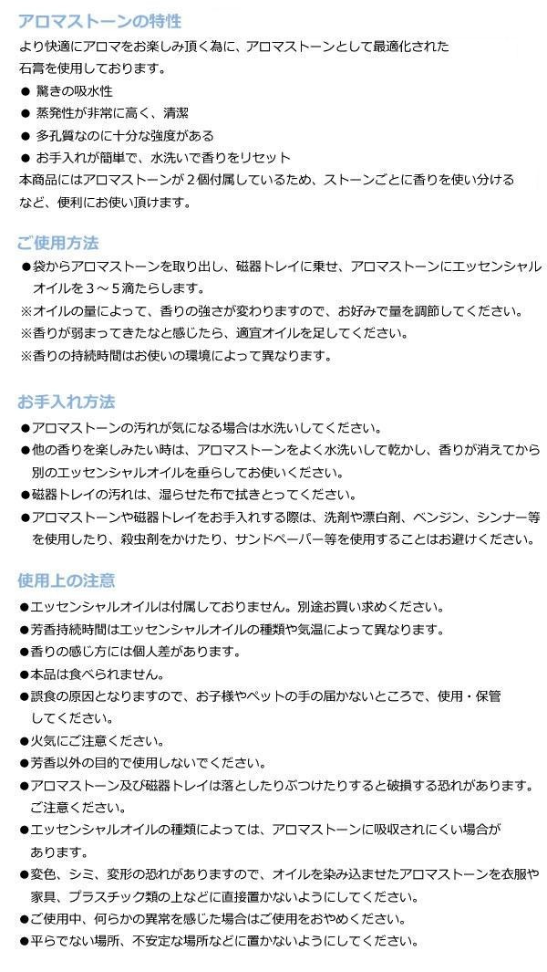 | セット内容 | アロマストーン×2 トレイ×1 |