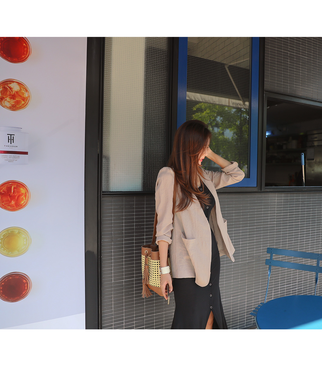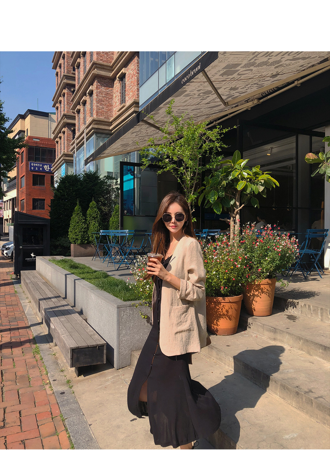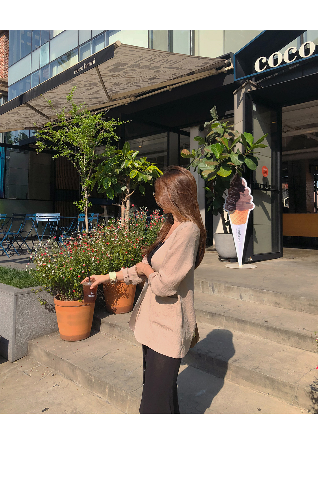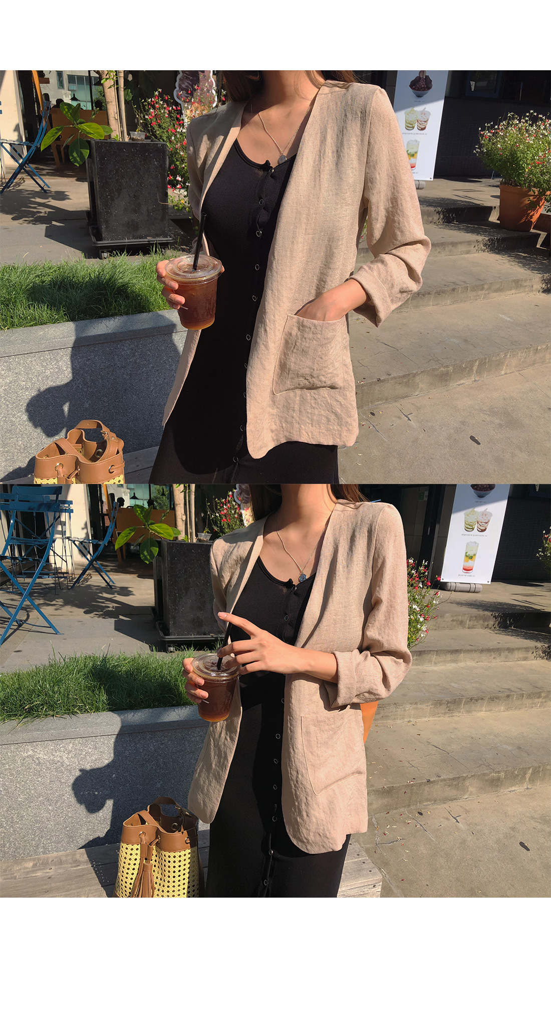 MD COMMENT 깔끔하면서 세련된 무드의 노카라 린넨 자켓 소개할게요.깔끔하게 떨어지는 브이넥 베이직한 디자인으로 제작되었어요.전체적으로 루즈한듯 편안하게 입기좋은 적당한 사이즈와기장감으로 부담없이 편안하게 즐길 수 있구요은근 여리여리한 분위기를 연출해준답니다!폴리 소재감으로 지금부터 S/S 시즌 가볍게 걸치기 좋으며군더더기 없이 깔끔한 디자인으로 두루두루 매치하기 좋은 데일리 아이템으로 추천해요.양사이드에 포켓을 달아 실용성을 갖춰 주었구요프론트 버튼없이 가볍게 걸치기좋은 자켓으로봄,가을에 코디하기 편안하면서실내 에어컨 바람을 막아줄 가벼운 자켓으로 강추해드려요 !3가지 컬러 준비했으며모델이 착용한 컬러는 베이지 입니다.COLOR/SIZE 베이지,블루,카키FREEMODEL FITTING 베이지/FREE