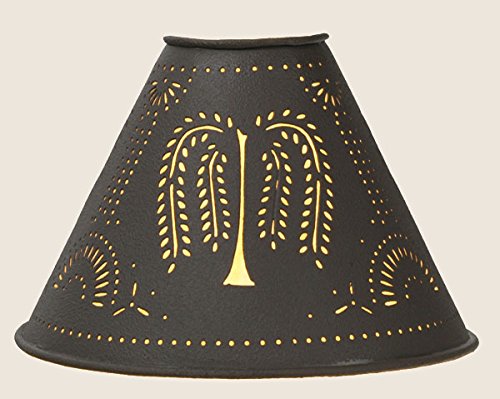 -. Feature : Tin Willow Tree Lamp Shade / Rustic Brown Tin Lamp Shade with Punched Willow Tree Design / 2" at top, 6" at bottom, 2"X 6"X 4" / Shade clamps on chandelier style light bulb / Lovely P.R.Imitive decor accent for lamps or chandelier