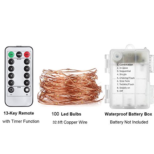 - Remote control and Timer: it has a battery box with a power button and it also comes with a remote control. This upgraded version with timing function, adjustable brightness, 8 lighting modes (Combination;In wave;Sequential; Slo glo;Chasing/Flash; Slow fade; Twinkle/Flash, etc) creates vibrant, dynamic atmospheres. 8 on the remote is the steady on light mode.