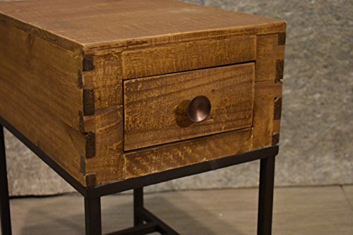 -. Color : Brown, Black -. EAN : 0813802028482 -. Feature : Featuring 100% solid pine / Base is hand-forged iron. / 1 Top Shelf and 1 bottom shelf / No Assembly Needed / Shipping is secure and fully insured, buy with confidence -. Label : Crafters and Weavers -. Manufacturer : Crafters and Weavers -. ProductGroup : Furniture -. ProductTypeName : HOME_FURNITURE_AND_DECOR -. Publisher : Crafters and Weavers -. Studio : Crafters and Weavers -. Title : Crafters and Weavers Rustic Industrial Style Solid Wood Side Table End Table -. UPC : 813802028482