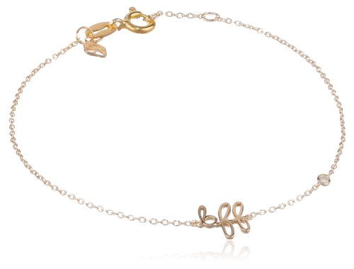 Delicate gold-plated "BFF" script bracelet with small bezel-set diamond station