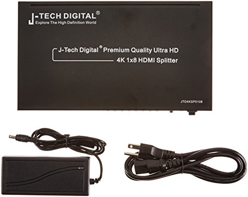 J-Tech Digital JTD4KSP0108 Premium Quality Ultra HD 4K 1x8 HDMI Splitter High Resolutions up to 4Kx2K, 12-Bit Deep Full HD/3D