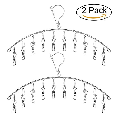 Toplife Stainless Steel Windproof Clothes Hanger with 10 Clips For Drying Socks, Bras,Underwears,Baby Clothes,Hats,Scarfs,Towels,Pants,and Gloves,Set of 2.
