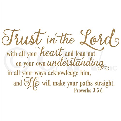 Trust in the Lord With All Your Heart..Proverbs 3:5-6 Vinyl Lettering Wall Decal Sticker (21"H x 38"L, Metallic Gold)