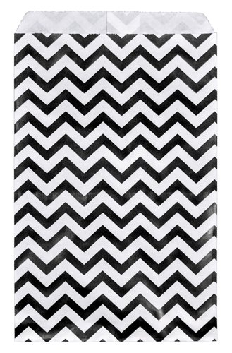 200 pcs Black Chevron Paper Gift Bags Shopping Sales Tote Bags 6" x 9" Black and White Zig Zag Design-Caddy Bay Collection