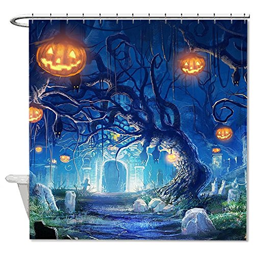 -. Title : HANHAOKI Halloween Mystery Night Landscape Polyester Shower Curtain Blue Color