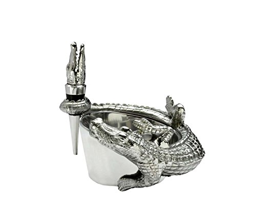 Arthur Court Designs Aluminum 4 inch diameter Alligator Wine Coaster and Stopper Set