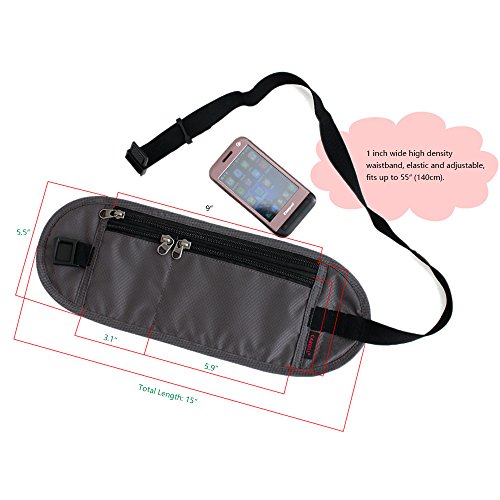 -. Feature : DEPENDABLE SECURITY: The ultra-slim waist bag fits discreetly underneath your clothes, and protects your belongings from potential thieves. / COMFORTABLE: The back side uses mesh padded material, not only soft and comfortable, but asl absorbent and breathable, allows you to stay comfortable when worn next to your skin. Perfect for every day use, cycling, exercising, jogging, yoga, hiking and travelling. / BRILLIANT DESIGN: Our slim concealed wallets sit close flat to your body, measure 15 x 5.5 inches, with zipper pouches and anti-theft buckle. 3 pockets are perfect size to conceal passports, tickets, cell phone, cash, cards, keys, jewelry, etc. / FITS ALL SHAPES SIZES: Extra long extended stretchy elastic waist band ensures easy adjusting our moneybelt from small to big sizes. Kids, men and women love our passport belts. The Perfect Travel Accessories Gift. / BUILT TO LAST: With durable tear-resistant and waterproof nylon, as well as smooth zippers, it makes for an ultra-light yet secure solution to keep your valuables safely hidden.