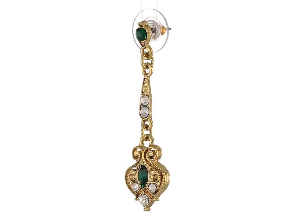 Downton Abbey Gold-Tone Edwardian Filigree Simulated Emerald Drop Earrings