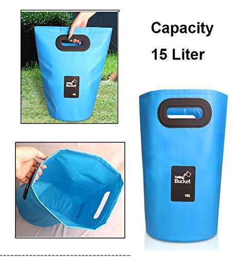 Compact Collapsible Bucket Camping Portable Folding Wash Basin Water Storage Container Lightweight Pail For Fishing Washing Gardening Hiking Travelling (Blue 15L)