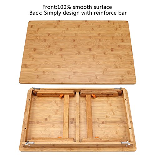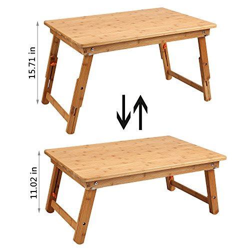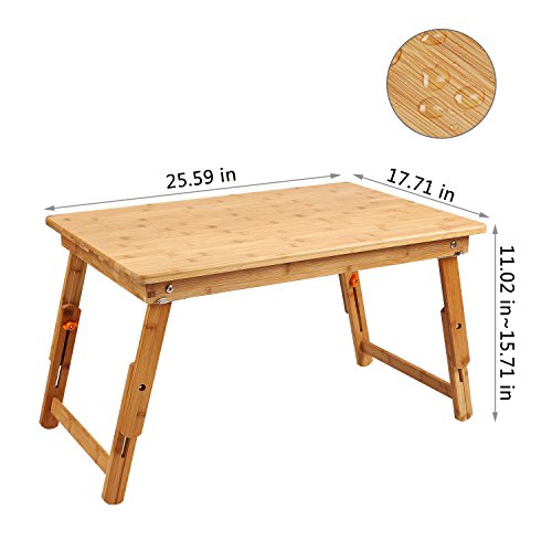 -. Title : Laptop Desk NNEWVANTE Adjustable Laptop Desk Table 100% Bamboo with USB Fan Foldable Breakfast Serving Bed Tray