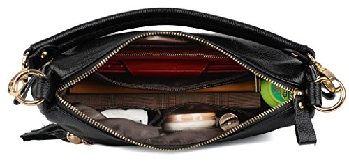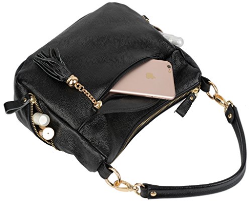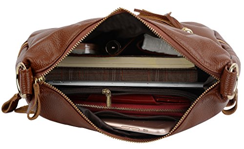 -. Brand : YALUXE -. Department : womens -. Feature : Soft Leather with shiny gold-color hardware and brown cotton lining. / High quality gold color hardware has high resistance to rust,corrosion and tarnishing.Shiny as a new one even years later. / 2 Outer zipped pockets for keys/smartphones. The inside has two open pockets and two zipped pockets for P.R.Ivate items. This purse can hold your phone/sunglasses and makeups and 10" tablet like IPAD AIR. / Perfect for a night out /dating /workplace / business. Also it is an awesome gift for family and friends. / Dimensions: 10.63" L x 7.87" H x 3.85"W. Weight is 0.6kg. Handle drop is 9.84" and also comes with a shoulder strap: 47.24". -. ProductGroup : Shoes -. ProductTypeName : HANDBAG -. Size : Medium -. Title : YALUXE Women's Double Side Pockets Tassel Leather Purse Crossbody Shoulder Bag