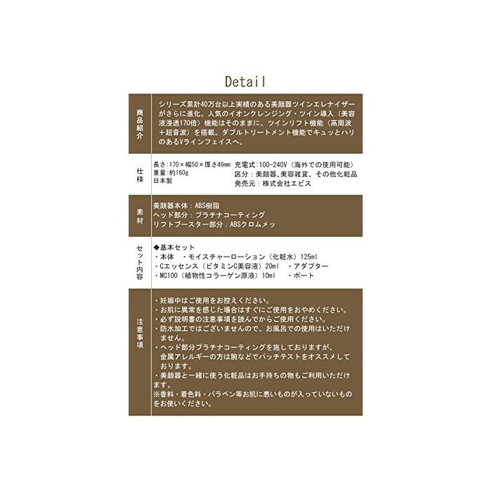 원본상품명: エビス化粧品 美顔器 超音波美顔器 ツインエレナイザPRO2 ホムエステDXセット 高周波 ラジオ波(RF)搭載 日本製