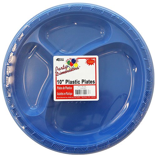 Studio : King Zak Industries, Inc. Publisher : King Zak Industries, Inc. Binding : Kitchen Product Description Party Dimensions 10" 3- Compartment Plastic Plate, Blue, 8 Count. This item is part of a set that includes a 10", 10" 3 Compartment, 9" and 7" Plate, 12 oz. Bowl and an 18 oz., 12 oz. and 9 oz. Cup. Matching Cutlery and Napkins also available. Comes in 16 colors: White, Ivory, Yellow, Pink, Lime Green, Hydrangea, Light Blue, Sunshine Yellow, Island Blue, Red, Orange, Silver, Blue, Hunter Green, Purple and Black. Designed for all occasions, banquets, dinners, parties, upscale catering and home. 0