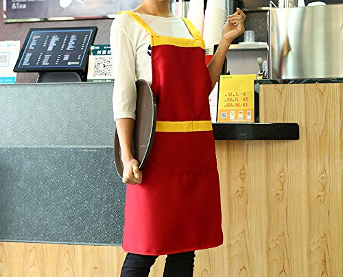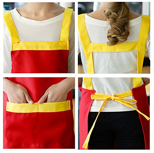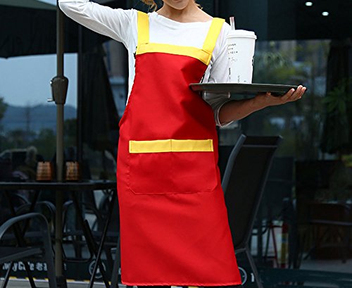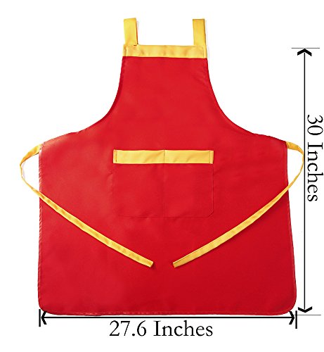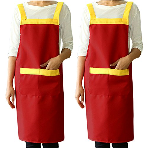 Waterdrop Kitchen Apron with 2 Pockets for Cooking Grill or BBQ. Resistant Adult Industrial Chef Waiter Bib Aprons - Machine Washable, Comfortable, Easy Care. (2 Pack Red)