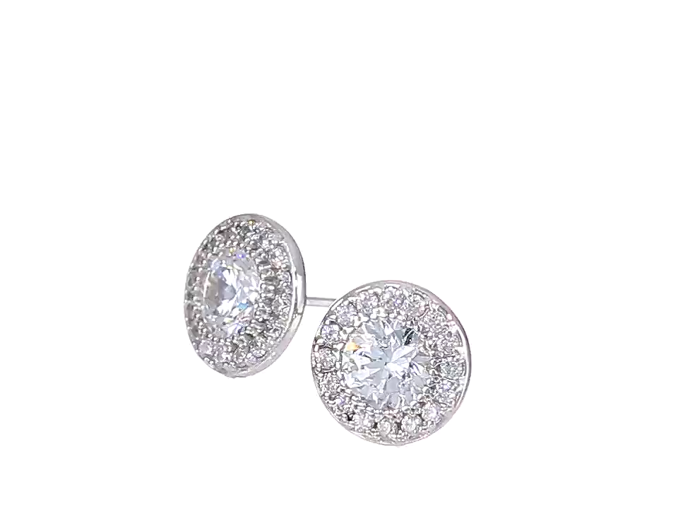 Platinum or Gold-Plated Sterling Silver Swarovski Zirconia Round-Cut Halo Stud Earrings