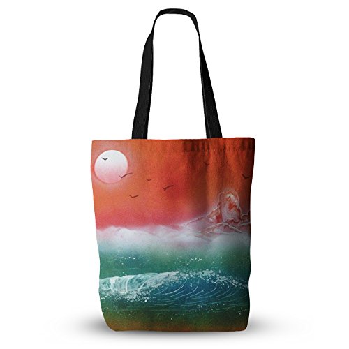 KESS InHouse Infinite Spray Art "Dream Seascape" Teal Red Everything Tote Bag, 18" x 18", Multicolor