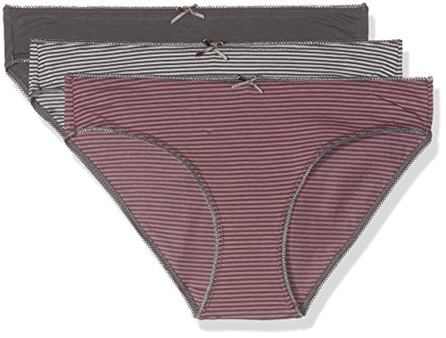 Minislips fur Damen von Marc O´Polo im praktischen Dreierpack mit Streifen in Anthrazit-Fuchsia, in Uni-Anthrazit und mit Streifen in Anthrazit-Hellgrau zarte Bogenkante am Bund und an den Beinabschlussen kleine, anthrazit-farbene Schleife am Bund Weblogo im inneren Ruckenbereich in softer, elastischer Single-Jersey-Qualitat