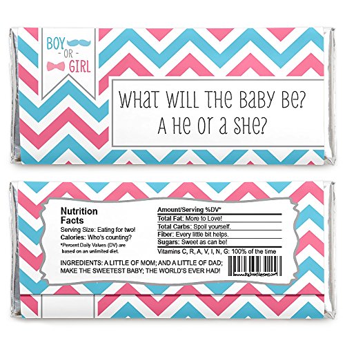 - Set contains – 24 Chevron Gender Reveal Baby Shower candy bar wrappers & foils (Candy bars not included)