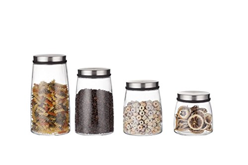 CLEAR GLASS STORAGE JAR WITH TIGHT LIDS SET OF 4