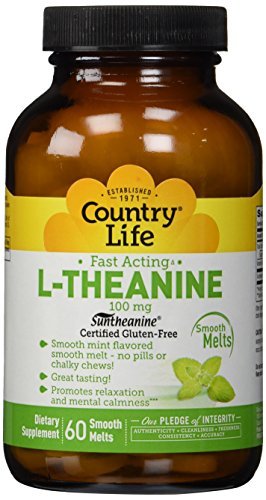 -. Feature : SMOOTH MELTS THAT PROMOTE RELAXATION - Beyond pills and chews, Country Life now offers you a great tasting, smooth melt. To help promote relaxation and mental calmness, this mint-flavored L-theanine melts quickly in your mouth. / STUDIED FORM - Country Life uses only Suntheanine, a form of L-theanine with over 50 studies and patents. / GLUTEN FREE AND VEGAN - Gluten Free Certification provided by GFCO.org. Vegan Certification provided by the American Vegetarian Association (AVA). / CONTAINS ABSOLUTELY NO: Yeast - Wheat - Milk - Salt - Preservatives - Artificial Colors - Artificial Flavors - Magnesium Stearate - GMOs / COUNTRY LIFE PLEDGE OF INTEGRITY - means that every product we provide comes with a guarantee of high quality and purity in every bottle.