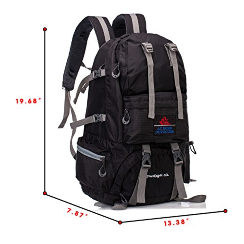 -. Feature : DURABLE- The travel backpack is made of high quality water resistant and tear resistant nylon,provide strengthen and long-lasting performance with light weight. / ADJUSTABLE STRAPS- For tying up your pack or hanging sleeping bag, mat, hammock, tripod, and other gears; Size 19.68''H*13.78''W7.87''D (50 Liter);Weight 0.97kg / COMFORTABLE- Air cushion shoulder straps help relieve your shoulder stress.Adjustable shoulder length,free to adjust to ideal length.3D honeycomb breathable mesh and high elasticity noodles back cushion,relax the back pressure and impact force,promote the circulation of air,breathable and comfortable. / MULTIPLE POCKETS- 3 front pocket,2 side pocket,1 main compartment with a sleeve for your items separate and organized.One side mesh pockets for water bottles or umbrella£¬another for your smartphone or keys. / PERFECT BEGINNER OR QUICK TRIP PACK- Perfect for both daily and outdoor activities.Use it as a carry on for your excess baggage,perfect for day trips,vacation, travel,day hikes,school,camping and shopping.