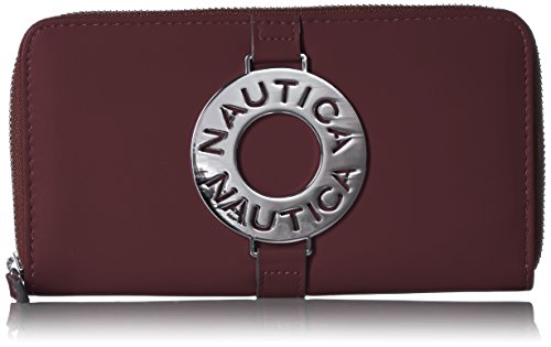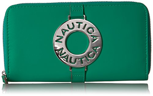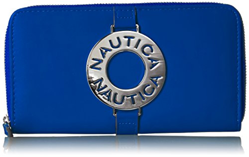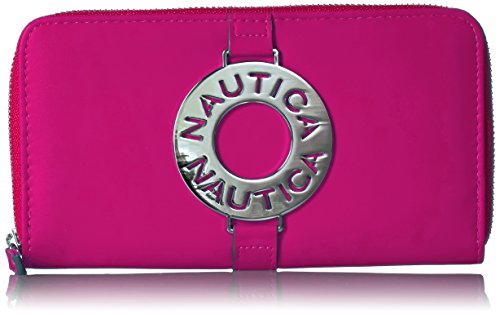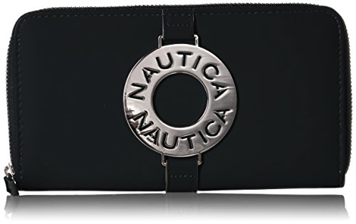 The Nautica ladies that sail zip around wallet clutch with rfid blocking is the perfect wallet for your everyday needs. With tons of card slots, slip pockets, zippered pockets, and id window, you'll have no problem fitting it all into one wallet.