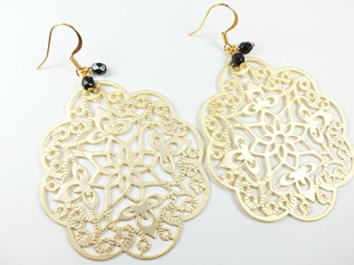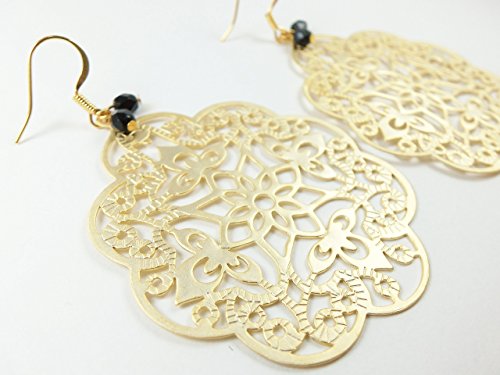 -. Title : Black Gold Earrings Large Bohemian Dangle Earrings Gold Statement Earrings Filigree Boho Dangle Earrings