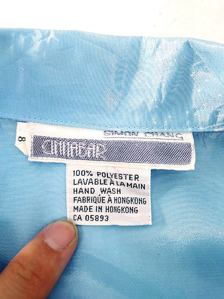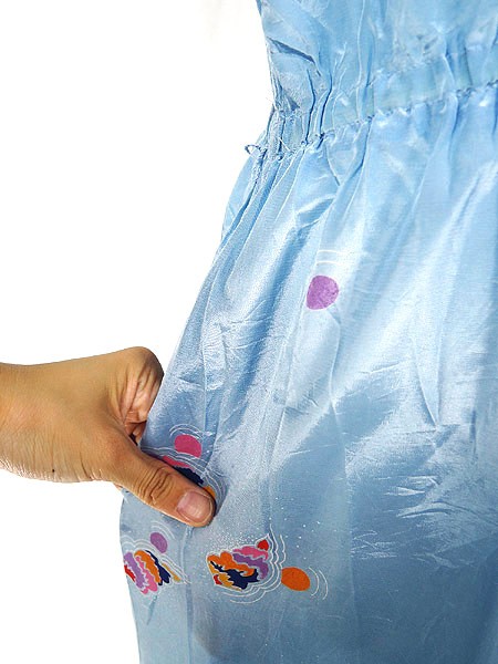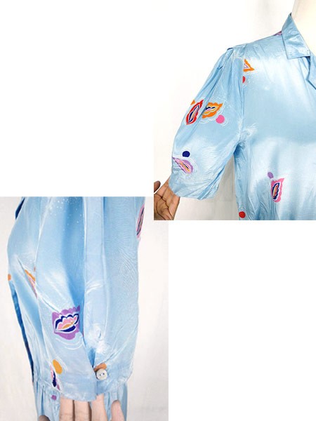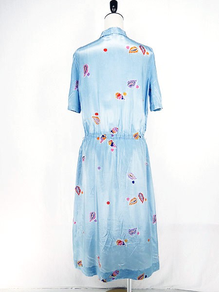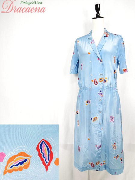 Ladies ブランド- カラー水色 メール便不可 コンディション★★★ 素材ポリエステル 表記サイズ8 スタッフコメントボタン付け替えあり。 実寸サイズ 着丈 112 cm 身幅 49 cm 肩幅 31 cm 袖丈 30 cm ウエスト 76cm 〜 90cm (30インチ〜35インチ) ※ウエスト・ヒップ以外は平置き採寸