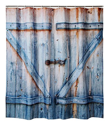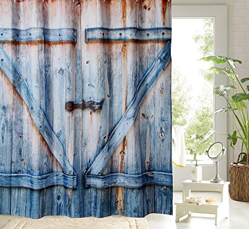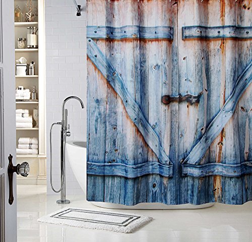 Vintage Rustic Wood Barn Door Bathroom Shower Curtains Teal -Polyester Fabric Waterproof Mildew Resistant -Old Wooden Themed -3D Digital Graphic Print with 12 Hooks (72x72) -Stylity Home