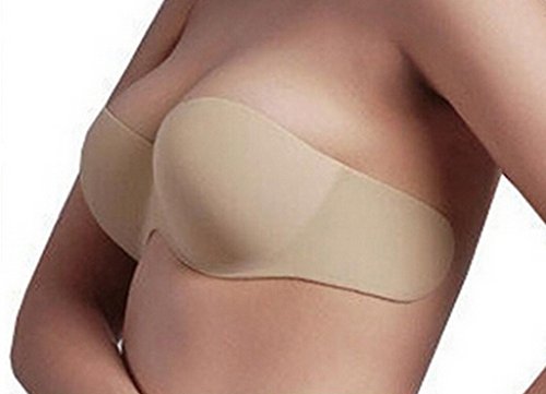 LadayPoa Backless Strapless Invisible Silicone Push-Up Bra Breast Nude C