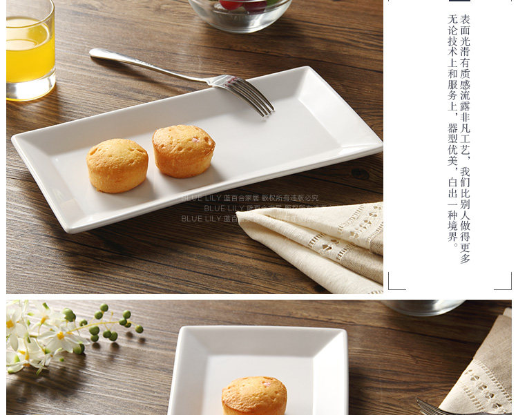 欧式创意陶瓷牛排盘子四方纯白色酒店餐具西餐盘 平盘蛋糕点心