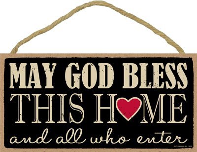 (SJT94550) May God bless this home and all who enter 5" x 10" primitive wood plaque sign