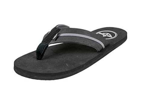 -. Feature : Comes in SIZES: SM (7-8), MD (9-10), LG (11-12), XL (13). / CUSHIONED COMFORT: Soft, cushioned sandal footbed offers all-day comfort. / CLASSIC CASUAL: The two-tone striped upper makes these men's flip-flops a sporty look to complement beach and casual shorts. / FEELS GREAT ON THE FOOT: Upper is lined with soft synthetic material. Constructed of lightweight materials, these are classic flips for every-day. / WATER FRIENDLY: The synthetic materials are great poolside, at the beach, or barbecue.