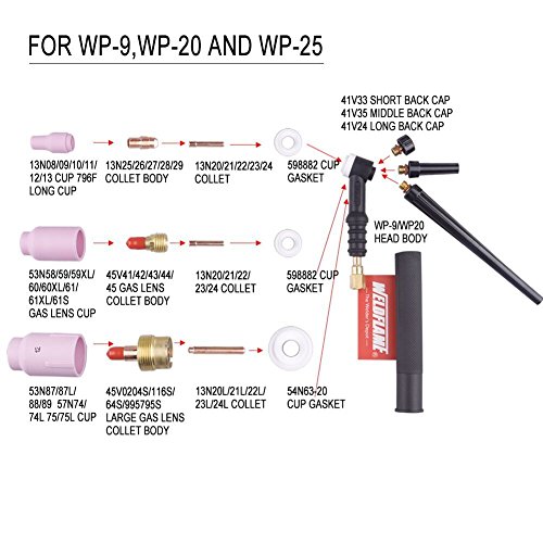 Weldflame 125A Air-Cooled Head Body 9FV (Flexible/Valve) TIG Welding Torch 9 Series