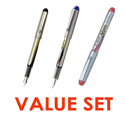 Pilot V Pen (Varsity) Disposable Fountain Pens, Black,Blue,Red Ink, Small Point Value Set of 3(With Our Shop Original Product Description)