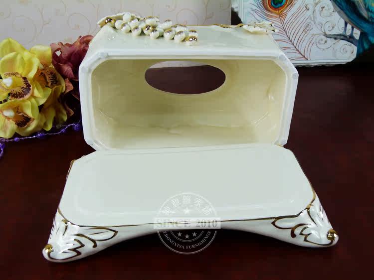 [Name] Baroque simple European Tissue Box [Size] Length 28 * W 18 * H 16 (cm) [Products] high quality ivory porcelain fired at high temperature・ very delicate porcelain painted bright shiny 18k really Jinyou Yong does not fade and crystal diamond paste・ ceramic in high-end products・ household gifts are very grade