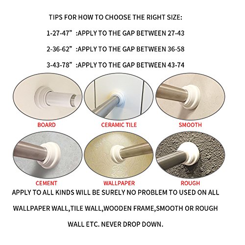 APPLY to All kinds surface- Spring tension rods will be surely no problem to be used on all Wallpaper wall,Tile wall,wooden frame,Smooth or rough wall etc. Never Drop Down.