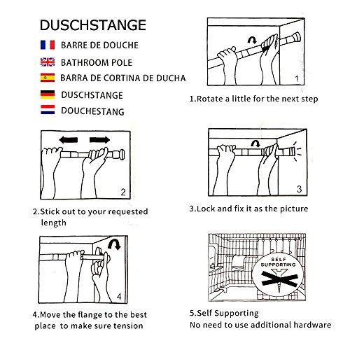 FAST & SUCH EASY INSTALLATION- Simple to extend,Pull and Lock,soft and sturdy rubber grippers in the end,Installed alone within minutes, No tools, No drilling, No damage when installing our adjustable tension rod! Instruction included.