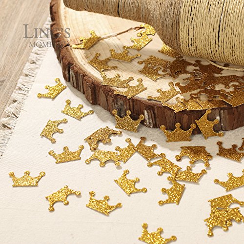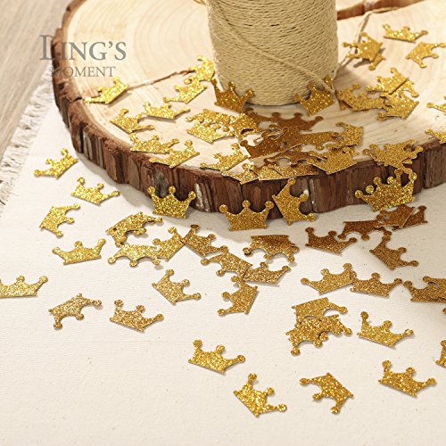 Ling's moment Gold Crown Confetti for Wedding, Birthday Party, Baby Showers, Festival Items & Princess Party Supplies, Gold Glitter Paper Confetti - DIY Kits, 100 pcs of 1" Crowns
