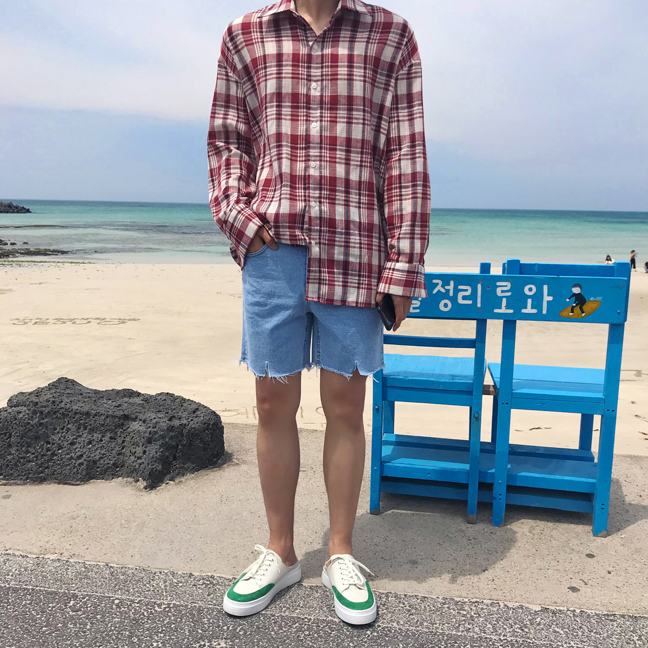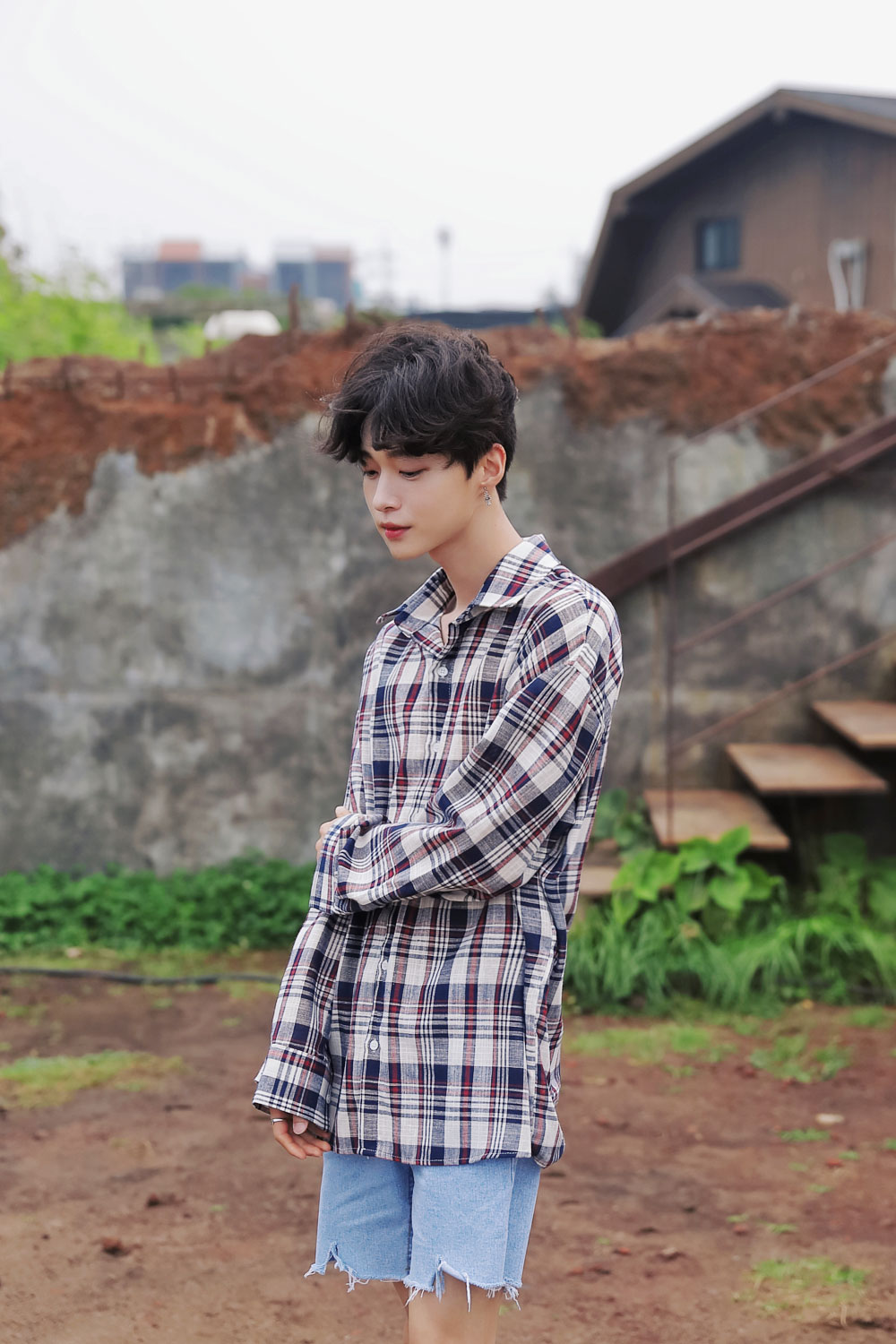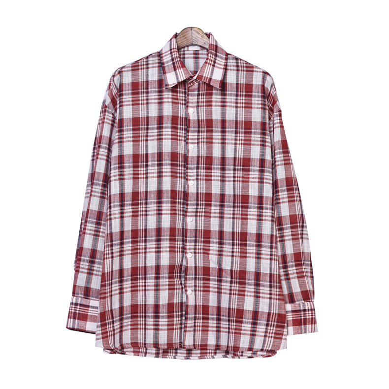 애월 오버핏 린넨 체크셔츠