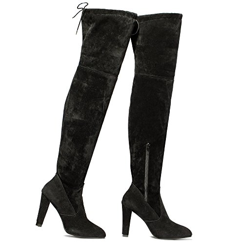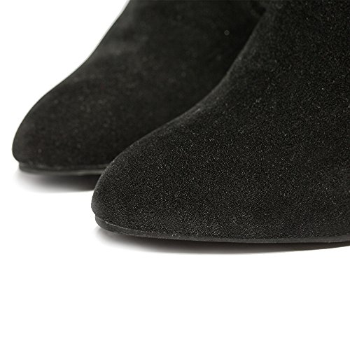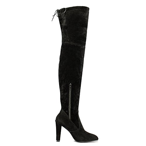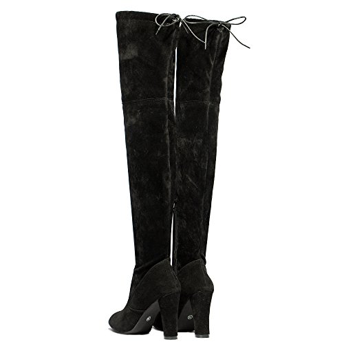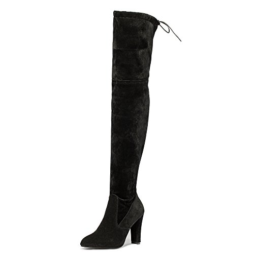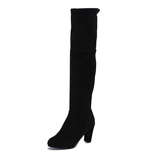 Material:suede upper,faux fur lining and rubber sole. Feature:block heel over the knee high boots,half inside zipper closure,drawstring ties at the top of the shaft. Style:super sexy and cute,tight style,make you elegant and trendy and never out of style. Fashionable,elegant,comfortable and Suitable in business,office party,wedding,club and so on. This style can be for just about any outfit with designs to help accentuate your legs and highlight your creative and fashionable look!The treaded outsole will make sure you go about your day and night safely and without fatigue.
