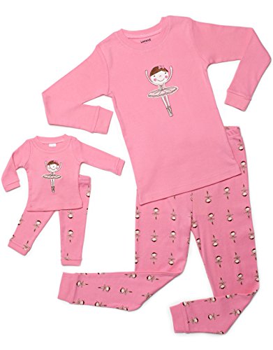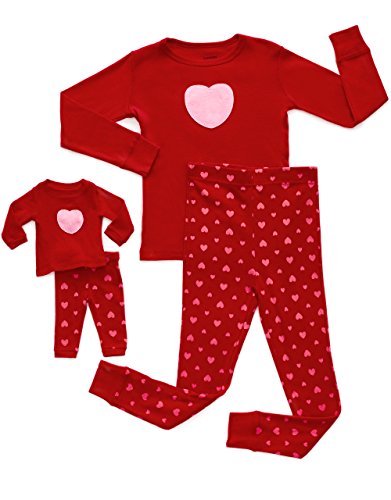 Product Description You'll love these cute and comfy Matching Kid Doll PJs from Leveret! The top features a Nice pink heart applique, And the bottoms have a super-cute hearts design. Both top and bottom are made of soft cotton. For fire safety, these pajamas should fit snugly. 100% Cotton Machine Wash Warm, Inside Out Made in China, *******Please consider when buying that these pajamas are snug fitting, if your child is above average it is recommended to buy a size bigger 0